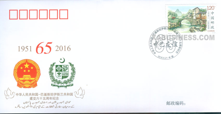 Title: The 65th Anniversary of the Establishment of Diplomatic Relations Between China and Islamic Republic of Pakistan - Commemorative CoverSerial number: PFTN-WJ2016-6