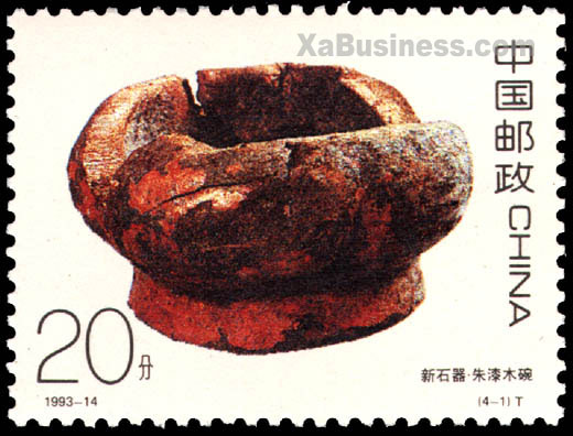 (4-1), The Neolithic Age, Wooden Bowl with Red Lacquer, 20 fen, 40*30mm