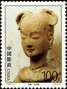 The Maijishan grottoes located along the ancient Silk Road near Tianshui City, Gansu Province are one of the four most famous grottoes in China. The grottoes were dug on a precarious cliff of the Xiaolong Mountain in the forest, and got its name because the mountain is shaped like a "piled wheat straw of a rural family".During the late Qin period in the era of sixteen kingdoms 1,600 years ago, the emperors ordered to dig cave-shrines on the cliff more than several dozens meters in height on which figures were created and paintings were done. During the Western Qin period, eminent Buddhist masters began to assemble there to teach Buddhist scriptures. During the Northern Wei Dynasty, Maijishan Mountain had become a famous holy site of Buddhism, in which more than 100 caves were added, and more than 10,000 figures were sculptured. Huge grottoes thus took shape.