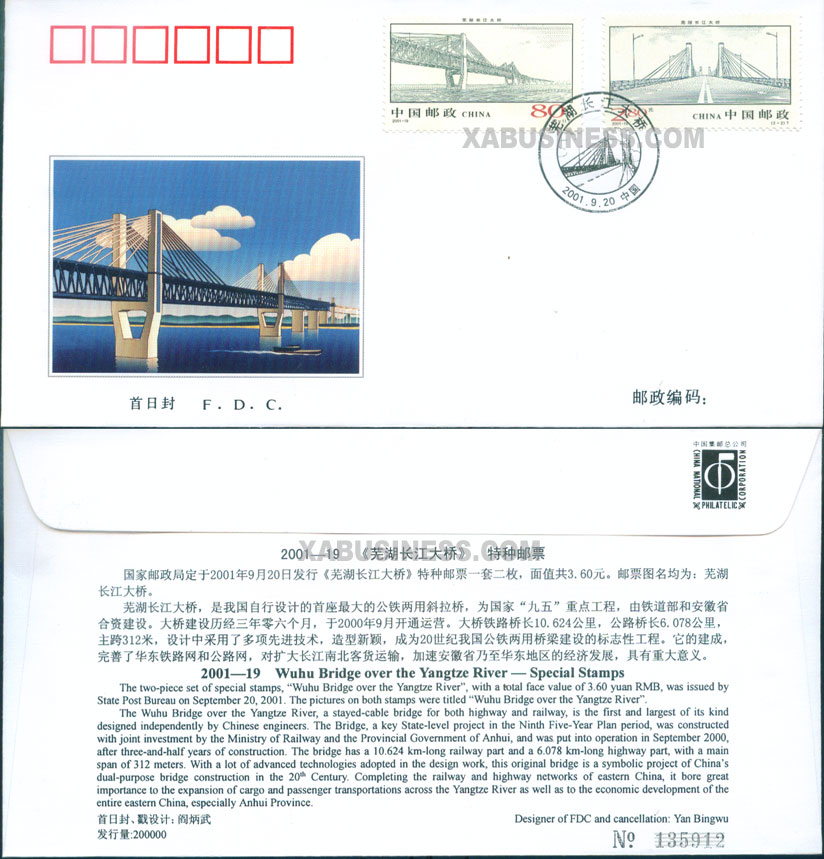 (2-2), Wuhu Bridge over the Yangtze River, 280 fen, 50*30 mmTechnical details
