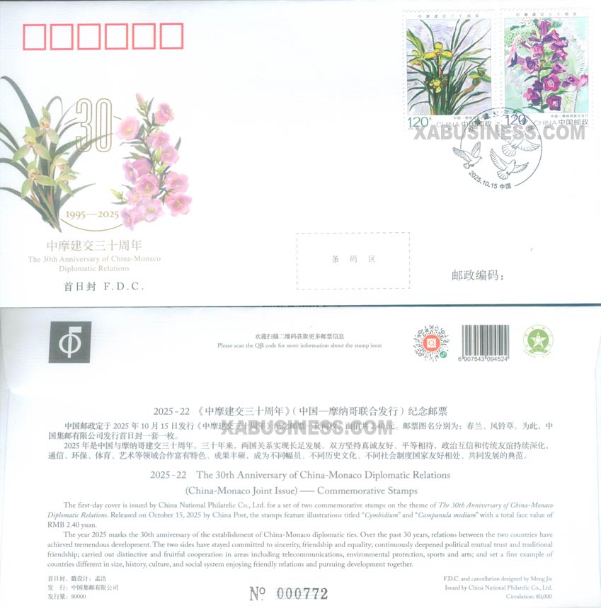 2025-22 The 30th Anniversary of China-Monaco Diplomatic Relations (China-Monaco Joint Issue)