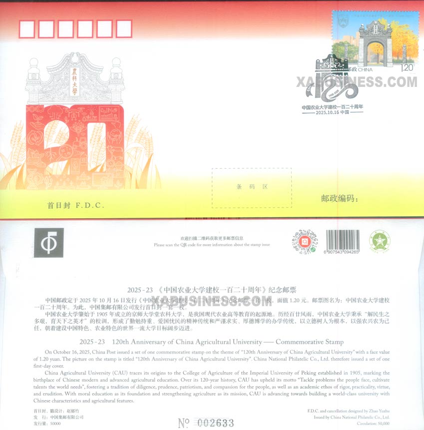 (1-1), 120th Anniversary of China Agricultural University, 120 fen, 44 * 33 mmTechnical details