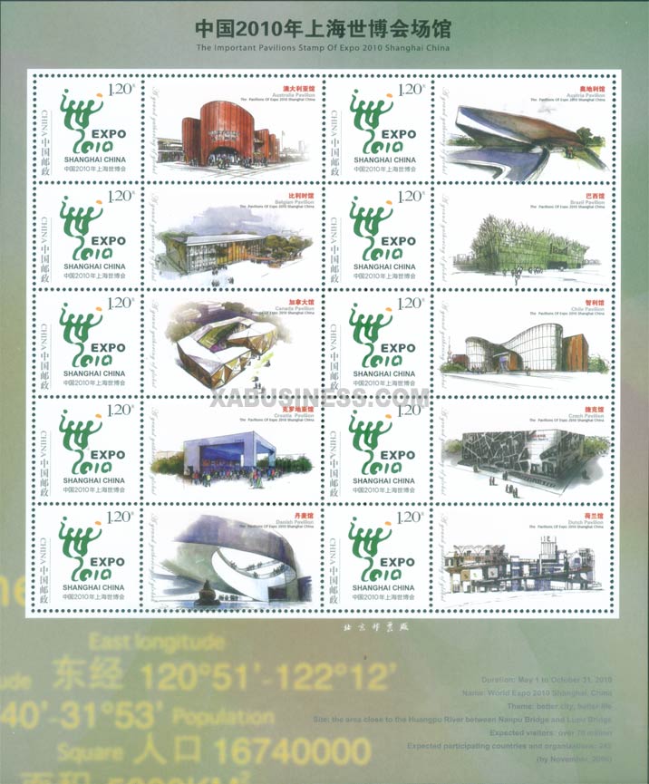 P-A1459 The Important Pavilions Stamp of Expo 2010 Shanghai China