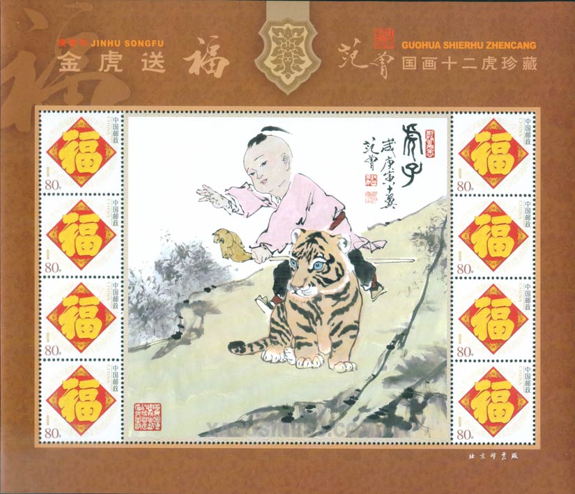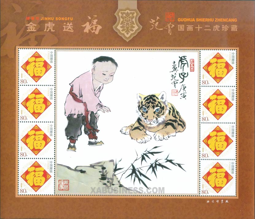 P-A1763 Golden Tigers Send Blessings - Fan Zeng's Chinese Twelve Tiger Paintings Collection
